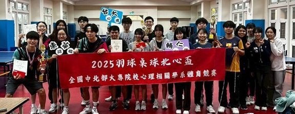 國立東華大學諮商與臨床心理學系承辦之「2025年全國中北部地區大專院校心理相關學系桌球暨羽球北心盃體育競賽」,已於 11 月 22 日(星期六)在國立東華大學體育館順利舉行並圓滿落幕。本次賽事由國立東華大學諮商與臨床心理學系桌球系隊及羽球系隊擔任籌辦,羽球賽由總召潘欣聖與李彥蓁同學帶領本系羽球系隊承辦,邀請中原大學心理學系、臺灣大學心理學系、輔仁大學心理學系等共15校15系所同學參與;桌球賽事由總召邱孟潔與黃梓熏同學再次帶領本系桌球系隊承辦北心盃桌球項目,邀請國立臺灣大學心理學系、輔仁大學心理學系與臨床心理學系,及本系共3校4系所同學參與(今年 6 月,本系桌球系隊就已自行籌辦全國(不分地區)大專院校心理相關學系桌球大心盃體育競賽,邀請國立東華大學諮商與臨床心理學系、國立彰化師範大學輔導與諮商學系、東吳大學心理學系三校三系所同學的參與)。