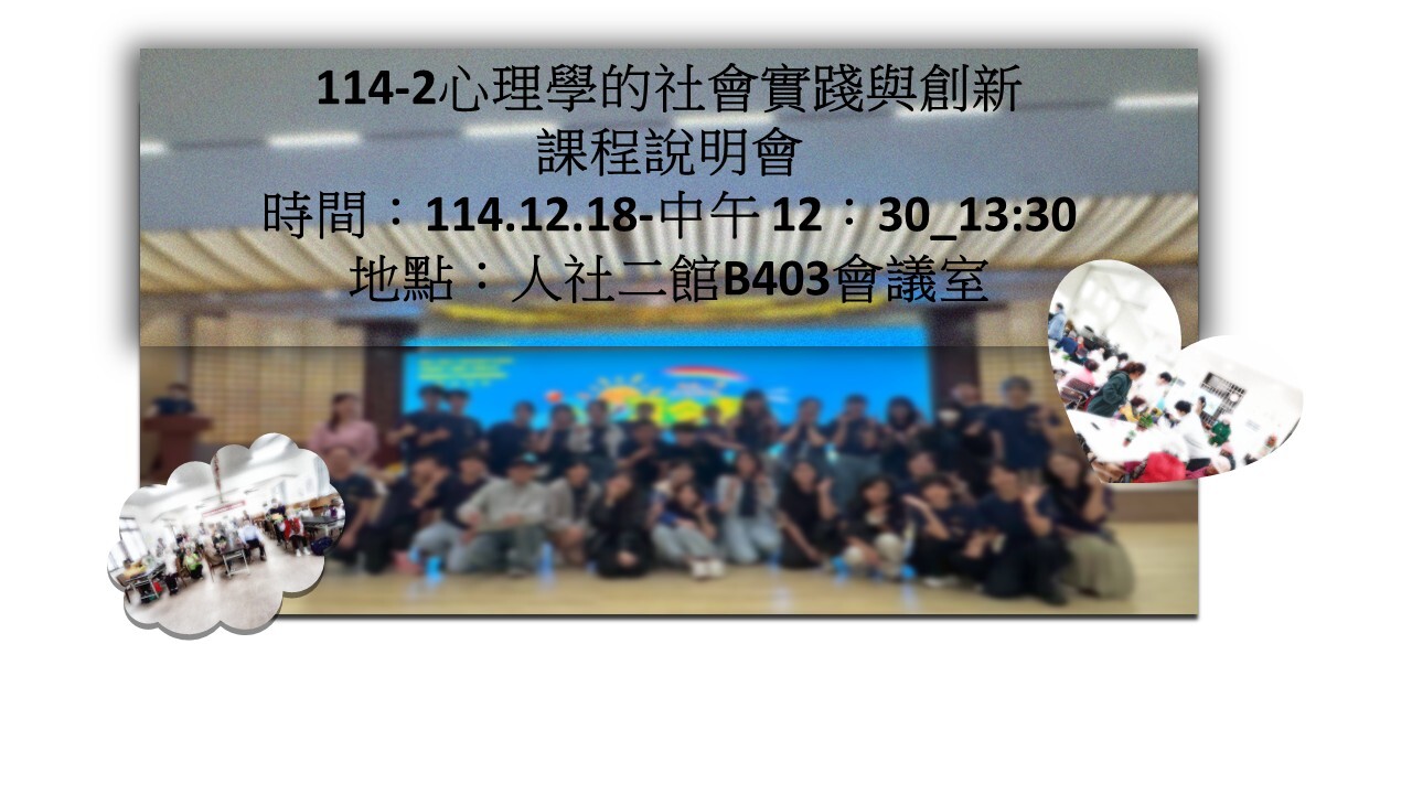 114學年第二學期「心理學的社會實踐與創新」課程說明會